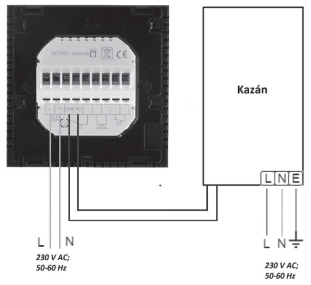Arra relére gondolsz amibe a vezetékek be vannak kötve? Az egy 3V-s relé és az érintkezői nyitnak vagy zárnak azokon a kapcsokon. A kazán, termosztát csatlakozási pontjait kapcsolja, elemes táplálású. Ez így a helyén maradhat a kazánban is és ott a kötés helyén is CSAK plusz 230V kell a Wifis termosztátnak, hogy állandó kapcsolata legyen az elérhetőség szempontjából.
