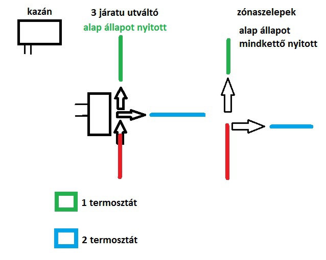 Adott egy ilyen :Ariston BS II 24 FF kazán 2db szobatermosztát és egy 3 járatu motoros (230v.) útváltó szelep vagy 2 db zónaszelep (mindkét fajta rugós visszaállítós). 2 külön lakrész fűtés vezérlését kelene megoldani. A kazán szobatermosztát csatlakozás 230v-ot kér vagy csak kontaktot? Hogy lehet megoldani a vezérlést minél egyszerübben? Köszönöm.
