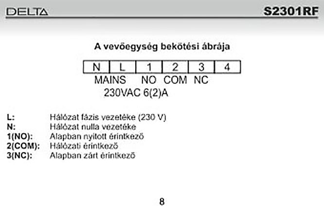 Szia! A Deltában a 2. (COM) és a 3. (NC) pontokra kell bekötni a két vezetéket. A kazánt nem említetted, hogy az melyik típus volna. A kazánban az adott két pont vezérlésnek megadott helyre kell bekötni ahol általában az átkötés be van téve, hogy termosztát nélkül is be lehessen üzemelni a készüléket.