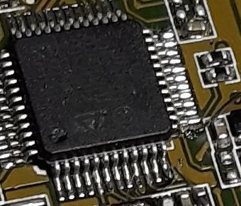 Jól eltelt azóta az idő... Kicsit előrébb vagyok, de a megoldás még messze van. Felraktam próbapadra, és a legegyszerűbben hozzáférhető USART2 TX-RX (16-17) lábakra forrasztottam kivezetést. Azok a huzalok 1,5-es sodrott vezető elemi szálai, azaz a legvékonyabb alkatrészlábaknál is vékonyabbak. Annyira apró ezen minden, hogy sanszos, hogy nem fogom megtalálni a GPS kommunikációt. A legvékonyabb Weller hegyemmel is lutri volt, meg is lepődtem, hogy elsőre sikerült. De ezek szélen voltak, a többi két pár, meg a többi között. Ez a két láb viszont nem nyert. Próbáltam egy-egy passzív alkatrészen jelet fogni odaérintéssel, de semmi használható egyelőre.