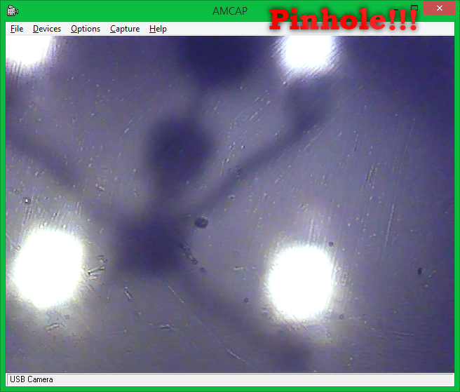 Próbálkoztam: fekete papírra egy tűszúrásnyi luk, amit befedtem celluxszal. Alany: olcsó USB webkamera. A lukas papírt egyszerűen beszorítottam az optika helyére. Webkamera képén a csillárom látható...