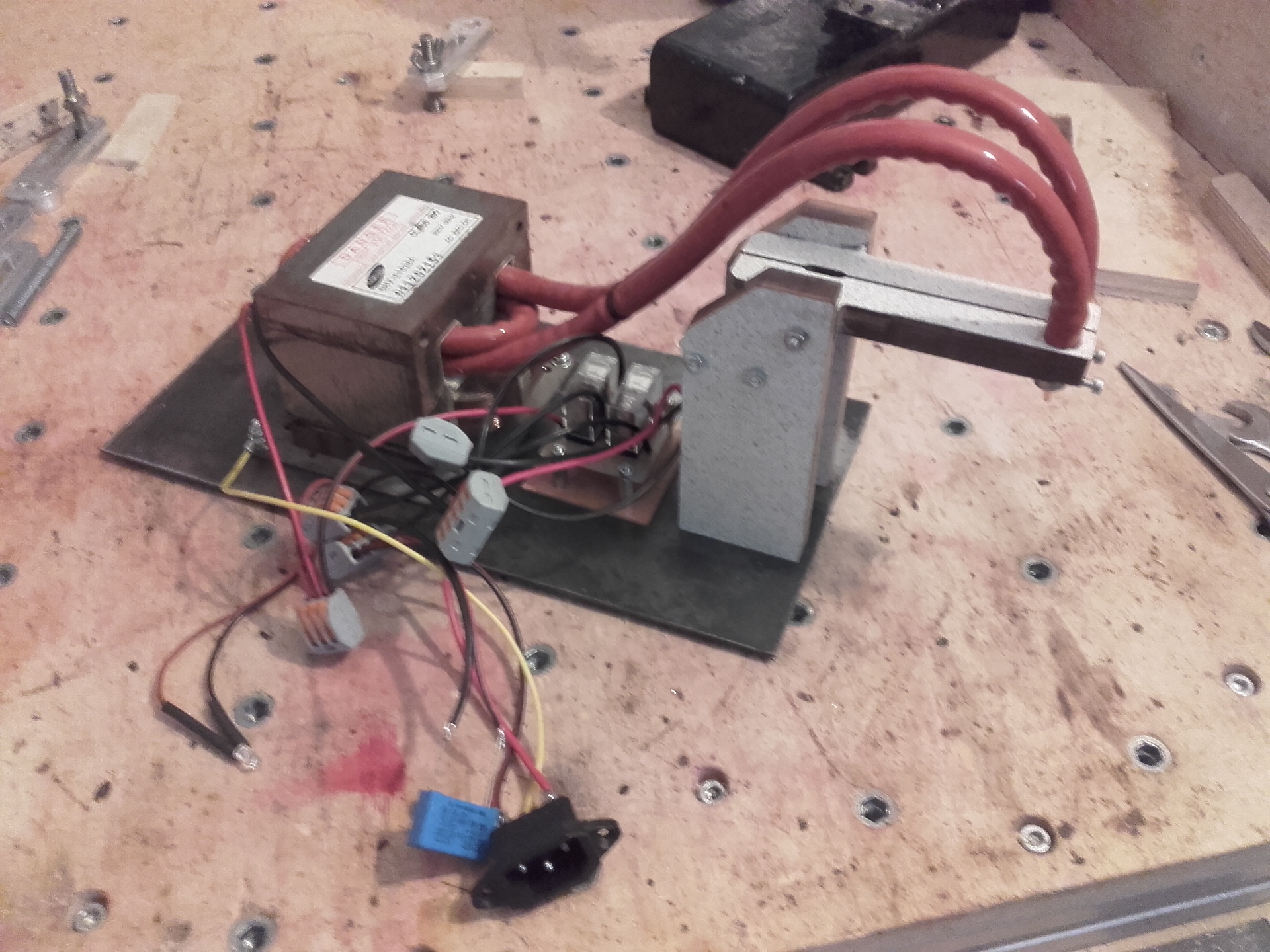 Nekem egy nagyon régi mikrotrafóból (van benne anyag) készített hegesztőm van, még_jobban leegyszerűsítve. tTaposós kapcsoló a primer tekercsre, így két kéz szabad, síimán jó a nikkelszalagra, nem is értem ezeket a több 10 ezres gépeket, hát úgyse fogunk gépkocsi kerék dobot hegesztgetni..