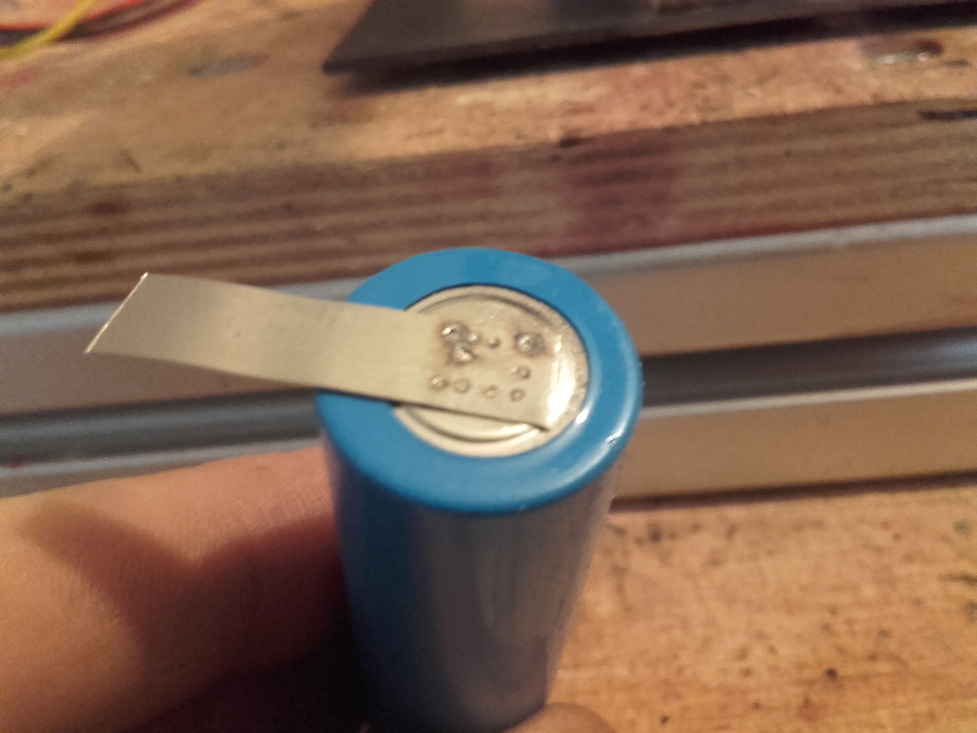 Sziasztok! Nemrég feladtam egy hirdetést 18650-es akkupakk készítésére. Kaptam elérhetőséget, és a neten is találtam ezzel foglalkozó céget, viszont olyan árakat adtak, amit magasnak gondoltam, így belefogtam egy saját ponthegesztő építésébe. Még korábban félretettem hasonló célra egy mikrótrafót, így "csak" az elektronikát, és a mechanikát kellett kifejleszteni hozzá. A mechanika tulajdonképpen a piaci modellekre hasonlít. Két külön mozgó kar van, mindegyiken 1-1 mikrokapcsoló, amelyek sorba vannak kötve. Az áramkör egy 2 relés, kondenzátoros időzítéses megoldás. Már az első hegesztésnél látszott, hogy sikerült eltalálni az impulzus hosszát. Képeken látható az első néhány hegesztés. Tudom, a kábelezés nem tökéletes, de ez még csak kísérleti darab. Majd összerakom rendesen is.