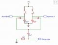 Egy kapcsolás tökéletesítéséhez szeretnék segítséget kérni. Az a felállás, hogy adott két nyomógomb, mely ugyanazt a funkciót látja el. Mivel pontos lenyomást kell észlelni, ezért kell egy debounce védelem. Ezt hivatott ellátni a két 100nF-es kondi. Gombnyomásra ezután megy a jel tovább (A,B gombtól függően) Hogy hova, az most nem is lényeges. Most jön az, hogy mindegy melyik gombot nyomtunk meg, kellene detektálni egy rising edge-t. Ezért két diódán át megy a jel tovább, hogy ne zavarjon be az A, B kimenetnek. Végül elvileg egy 10nF-os kondi sül ki, ami ugye sokkal kisebb a 100nF-nél, így hamarabb tovább megy a jel, mint hogy felengedtük a gombot. Na most egyáltalán nem vagyok benne biztos, hogy ez így működni fog ![]() Szóval szívesen veszek mindenféle helyreigazítást az ötlettel és a kapcsolással kapcsolatban!