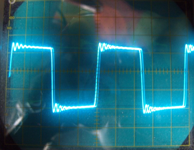 Régen úgy csökkentették a csöves erősítők torzítását, hogy a kimenő primerrel párhuzamosan kötöttek egy viszonylag kis értékű kondit. Ez a kondi a magasabb frekik felé egyre inkább söntölte a primert, ezáltal a kimenettől távol (próbálta) tartotta a magasabb felharmónikusokat. Ezáltal csökkent a torzítás (meg a magas átvitel, de az már a forrásban sem volt, és nem okozott problémát), elképzelhető, hogy ennek a cuccnak milyen lehetett a négyszögátvitele....Tehát, inkább hallgasd, ne nézegesd.