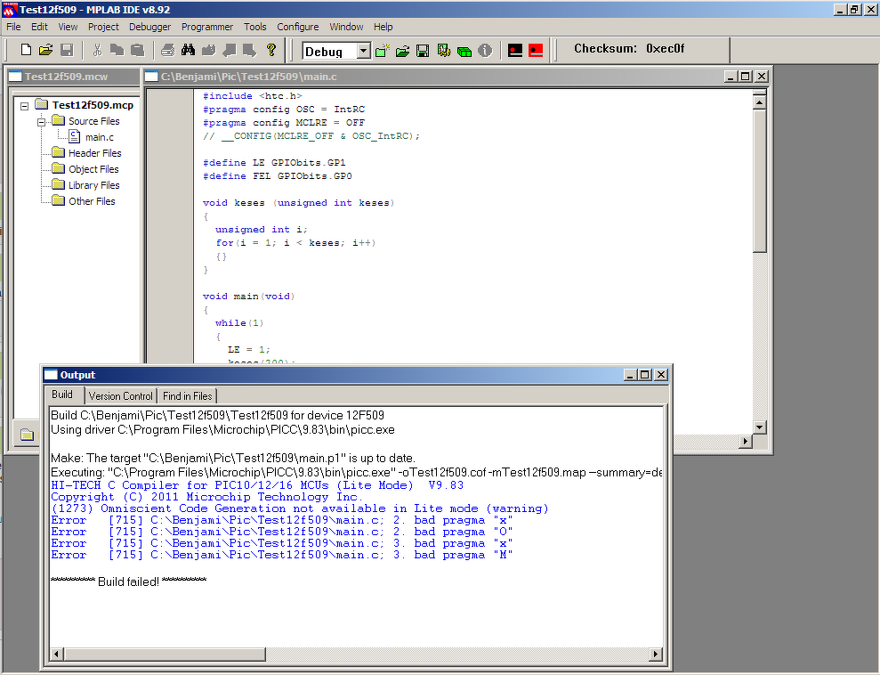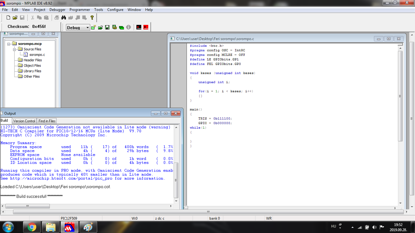 Sziasztok! Hobbistaként szeretnék segítséget kérni. Adott MCU: PIC12f509. Adott fejlesztői környezet: MPLAB IDE v8.92. Programozó PICkit2.