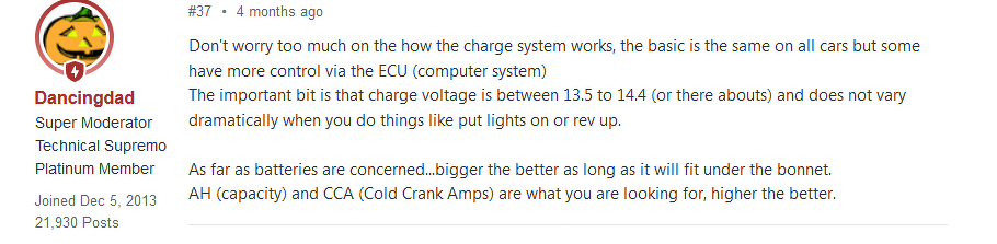Lehet hülyeséget írtam de nekem ez jött le az egészből. Még fogok méréseket csinálni, hogy mikor mennyi ideig megy fel 14V fölé, persze ha felmegy (pl. egy hosszabb út utáni indításnál).