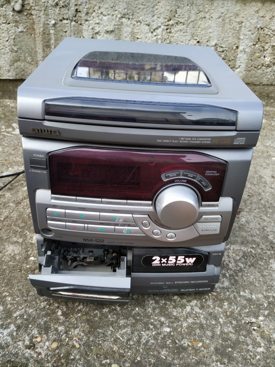 Music center működő erősítővel, törött kazetta ajtóval, hangdobozok nélkül, CD része biztosan rossz.