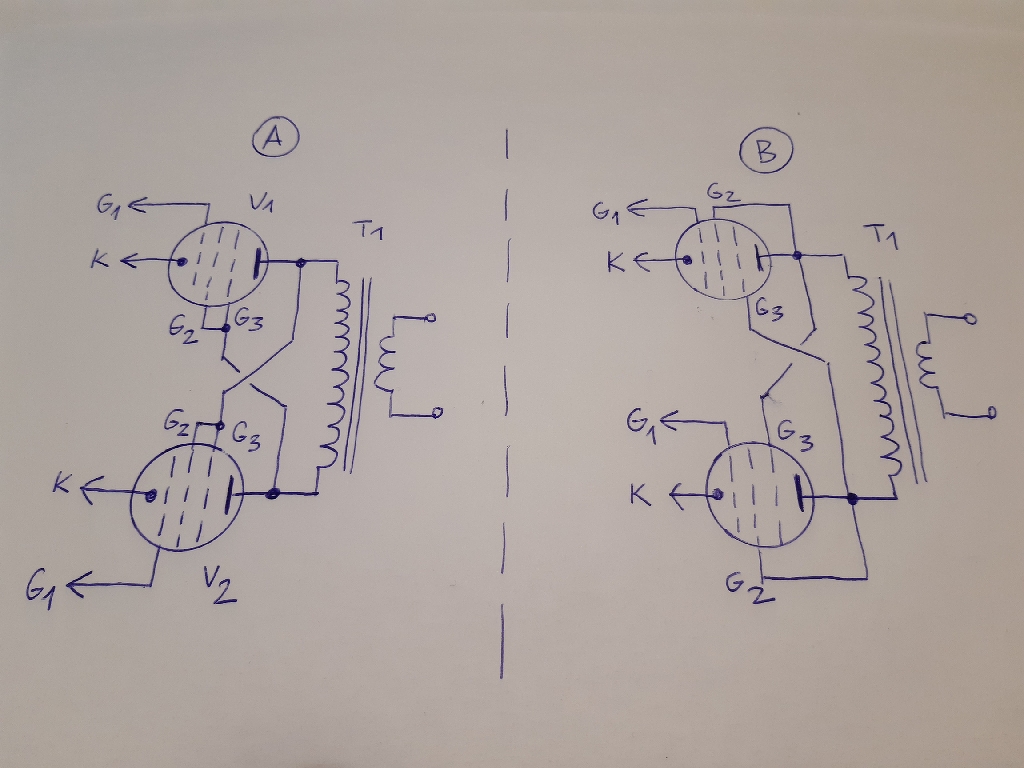 A no NFB ECC85/EL34 PP triódas kapcsoláshoz feltennék egy kis elvi kiegészítést, amely a végcsöveknek egyfajta "kiterjesztett" üzemmódját próbálja elemezni. Ez nem új ötlet, a McIntosh cég push pull végerősítői már a '60-as évektől - több más mellett - ezt az elvet használja.