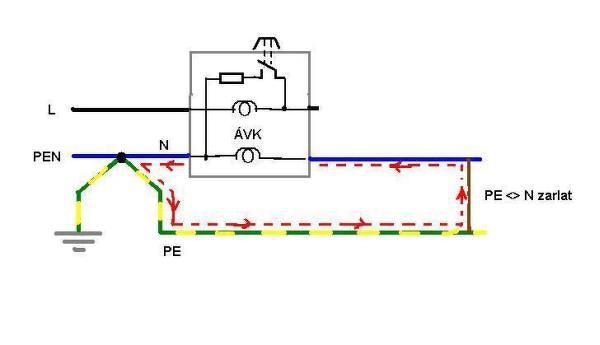 Ez ok, de az áramutat rajzold fel úgy, hogy a PEN szétválasztásnál nincs összekötve, a fogyasztói oldalra pedig rajzolj egy jó nagy kondit.