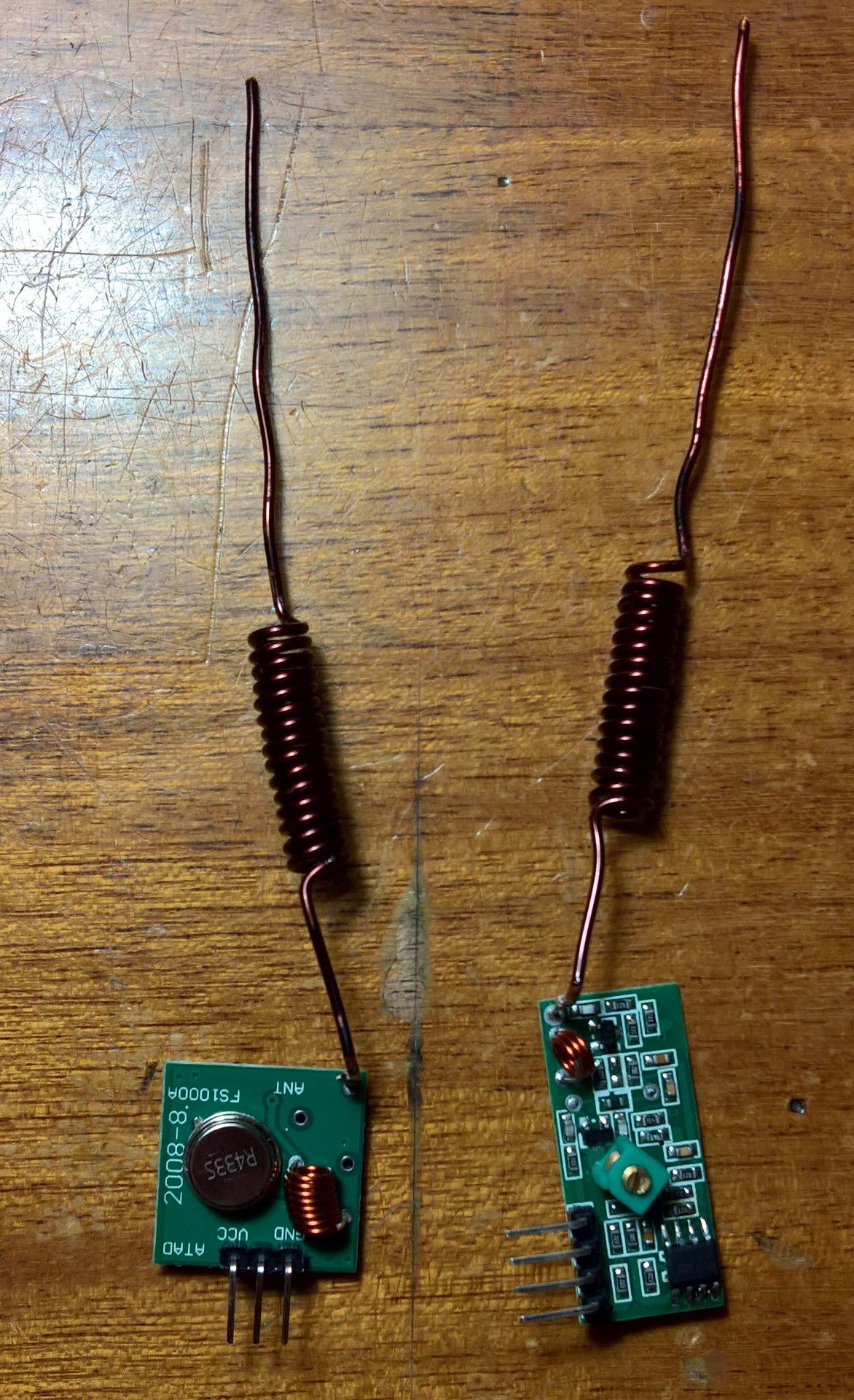 Sziasztok! Összeraktam egy RF 433Mhz adó vevőt a HelloWord példával. Az a gondom vele, hogy nagyon gyenge a jel csak pár cm-re egymástól működik rendesen. 3 métert akkor tudja ha az adón megfogom a kis tekercs antenna forrpontjait. Már forrasztottam rá nagyobb antennát is, de az sem segített. Mi lehet vele?