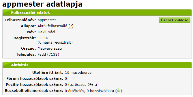 Privát üzenetben spamelt tagokat, ezért függesztette fel a fiókját a rendszer, mert sok egyforma üzenetet küldött különböző címzetteknek. Újraregisztrált "Dekli Náci" névvel, appmester nicknévvel.