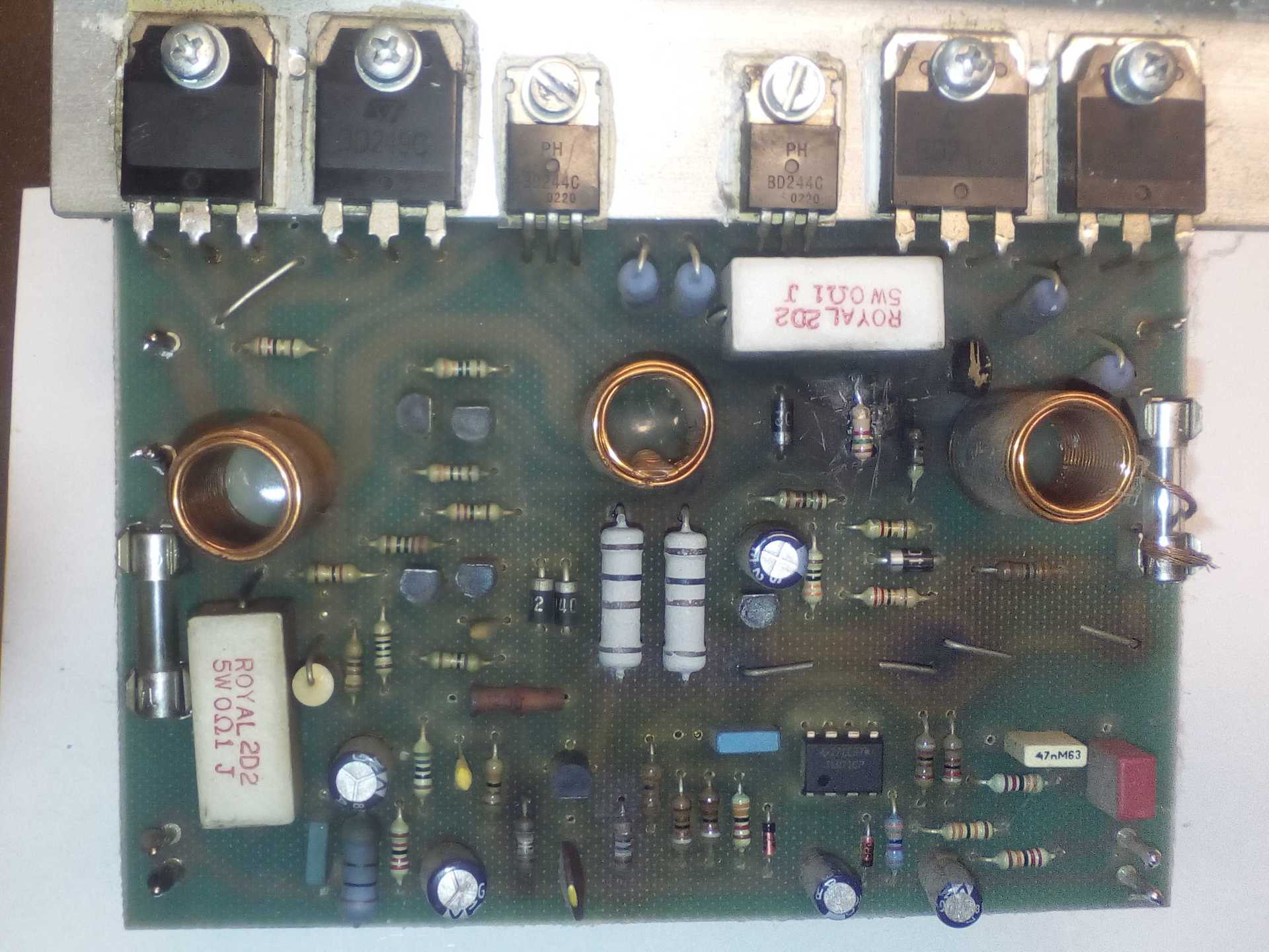 Természetesen a 33k. Persze az is van (volt de kicseréltem) benne. Ebből a végfok panelből több száz, esetleg még több dolgozik a világon. Szégyen. Ezért tervezte a tervező az ofszetbeállítót hozzá. A korábbi verziókon csak egy utólag beforrasztott drift ellenállás jelezte a félreborult egyensúlyt. Ennek ellenére úgy maradt, csak hozzátettek egy trimmeres kiegészítést.