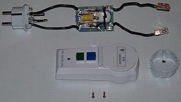 Amúgy egyszerűen, csak a bemenő és a kimenő áramot figyeli a fázis és a nulla között. Ha a kettő között eltérés van lekapcsol, mert másfele is folyik áram. Ha a bemenő, és a kimenő ellenállás nem egyezik akkor egy figyelő ellenálláson feszültség jelenik meg és a relé leold.