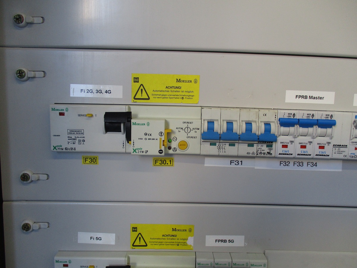 Nem kell aggódni, tudom miről van szó. Minden nap olyan helyen dolgozom, ahol legalább két ilyen visszakapcsoló van, ipari környezet, mobiltelefon bázisállomások. Az egyik a tápegységeké, a másik a klímához és/vagy szellőztetőhöz tartozik. A világításnak és dugaljaknak nincs ilyenük, csak Fi-reléjük. Szép nagy matricákkal van figyelmeztetve az ember, hogy visszakapcsoló van a rendszerben (a képen csak a kicsik láthatóak).