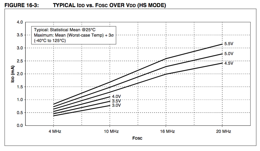 Mennyivel nagyobb a fogyasztása egy PIC nek, hogy ha 4MHz helyett 8 vagy 20 MHz es kvarc oszcillálja? Elem vagy akkumulátoros üzemelés miatt kérdezem. Köszi.