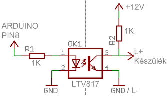 Felbátorodva a kaputelefon központ és a kézibeszélők kommunikációját firtató bejegyzéseken csináltam egy egyszerű kapcsolást, amivel szeretném életre kelteni a kézibeszélőt egy arduino segítségével. Sajnos hiába reprodukáltam a központ által küldött jelsorozatot így, a kézibeszélő meg se nyikkan. Pedig elvileg az időzítés és a cím, ill. jumperelés is stimmel. Jelanalizátorral visszaellenőriztem, elvileg stimmel. Elektronikában sajnos annyira nem vagyok jártas, ezért érdekelne a véleményetek, hogy mit csinálok rosszul. Lehet rosszul értelmeztem az optocsatoló alkalmazhatóságát erre a feladatra. ![]() Jobb oldalt 12V van kötve a kézibeszélőn L+ -ra és az optocsatoló megfelelő lábára, GND és L- szintén közösítve van. Bal oldalt az Arduino vezérlés, az jól működik.