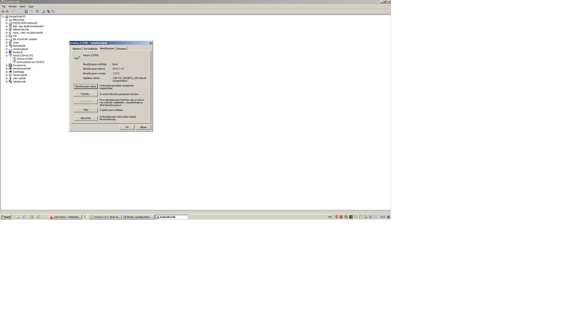 Az FT232 USB illesztő krepált be szoftveres szinten szerintem. Az IC biztos helyes irányba van, mivel az ICSP csatiról programozható, mondjuk egy STK500 al. Lehet, hogy azért nem tudom kijavítani a hibát, Mproggal, Zadig-al, FTproggal, mert lezártam véletlen az FT232 programozó oldalát. Nem tudom. Másik gépben sem más a helyzet, sajnos. Most Com8 portra teszi a gép, de az arduino progiban ezt nem látja, így esélytelen bármit is beleégetni az AVRbe.