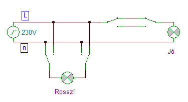 Hello! Nem arra gondolok. Hanem amiről Te írtál, az az első változat lenen, ami helytelen. A második változat a helyes kapcsolás. (A Led-es lámpánál pedig a második változatnál, a két egymás mellet futó összekötő vezeték között kialakuló kapacitás okozza a Led-ek halvány világítását.)
