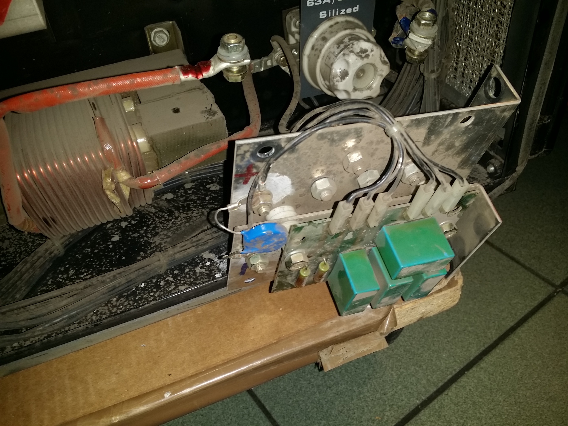A hegesztő trafó után van egy egyenirányító dióda hűtővel, ahová rá van kötve a vezérlőpanel is.