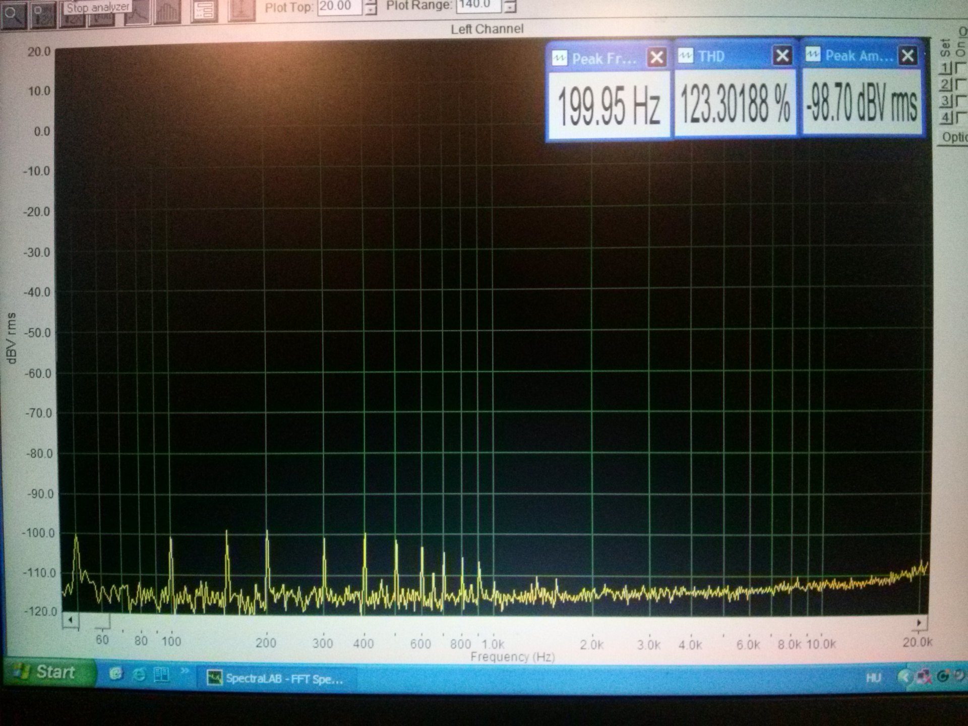 Lecsökkentettem a THD-t. Kíváncsi voltam változik-e a hangja ha semmi más paraméterhez nem nyúlok, csak a visszacsatolási tényezőt növelem meg. Drasztikusan változott. A mélyek megnőttek és sokkal megfogottabbak lettek, a középsáv és a magasak kitisztultak, a hangszerek szétváltak, a halk részek minden odafigyelés nélkül ott vannak a hangszórók mögött a térben, pedig monó.