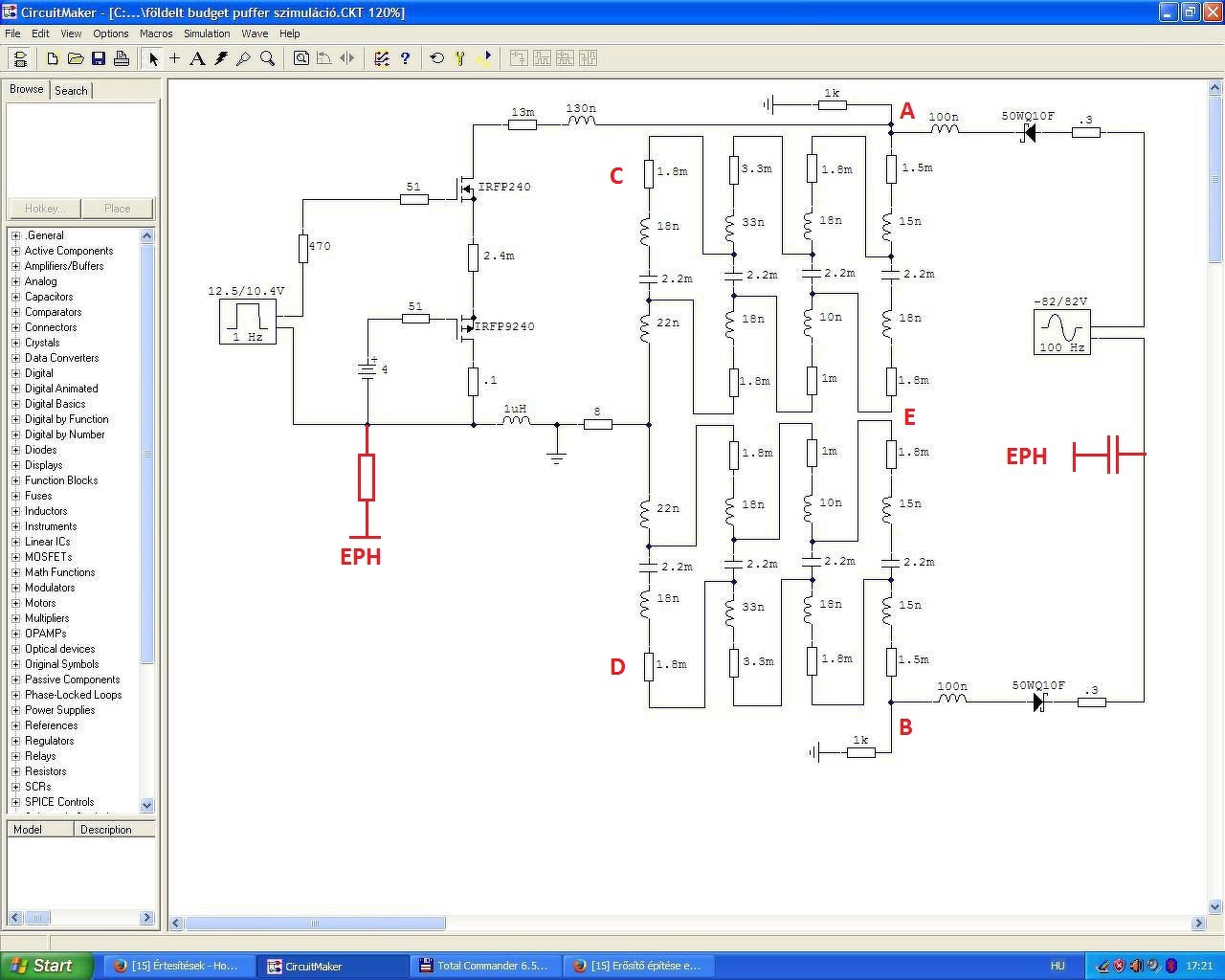 Szerintem ki kellene egészíteni a szimulációt. A tápfelöl átfolyó áramhoz a parazita kapacitásokat, illetve az EPH-hoz csatlakozás impedanciáját is bele kéne venni.