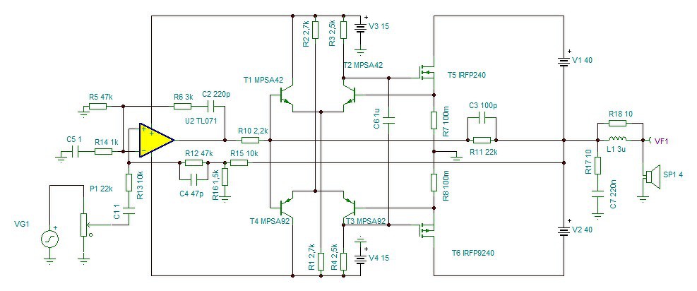 Nem elég jó a kivezérelhetősége. Ezért én is hozzátettem kicsit. Így már szerintem fog működni. A pf-kel a megépített valós kapcsolásban játszani kell majd. A hangosító erősítők egy új generációja született a kapcsolás flexibilitása miatt, az holtbiztos.
