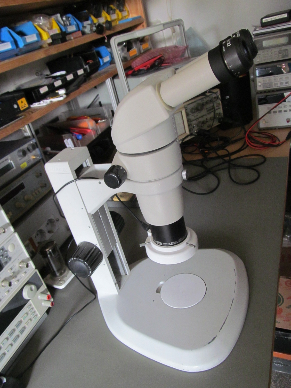 Én egy régi SMZ-1000-es Nikont nyúzok, vagy 15 éve. Max. 80x-os nagyítást tud, nagyon jó vele dolgozni, nem fárassza a szemet. Általában 20x-os nagyítást használok, ritkán kell a nagyobb. Azért szeretem, mert pont jó a munkatávolsága, könnyű alatta dolgozni. Van hozzá egy kamera adapterem/tartozékom is, ha dokumentálni/fotózni kell a javítást, vagy efféle elvárás lenne.