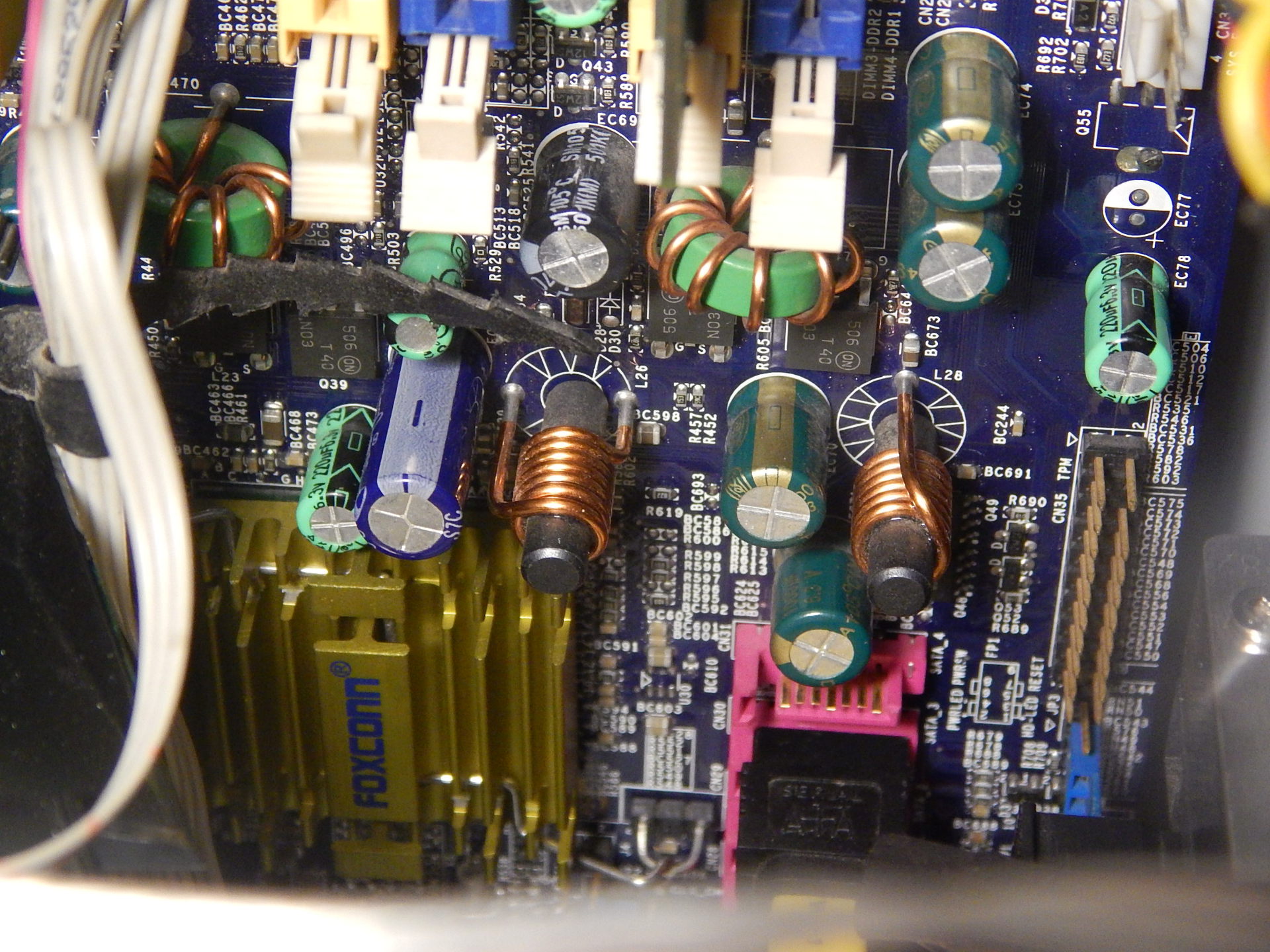 A kicserélt kondenzátor alatt a hűtőborda alatt a kézikönyv szerint "South Bridge: ICH6/6R" vezérlő található. Az alaplap már elég régi típusa: Foxconn 915 P7AD. Ebben nincsen alaplapra integrál videokártya.
