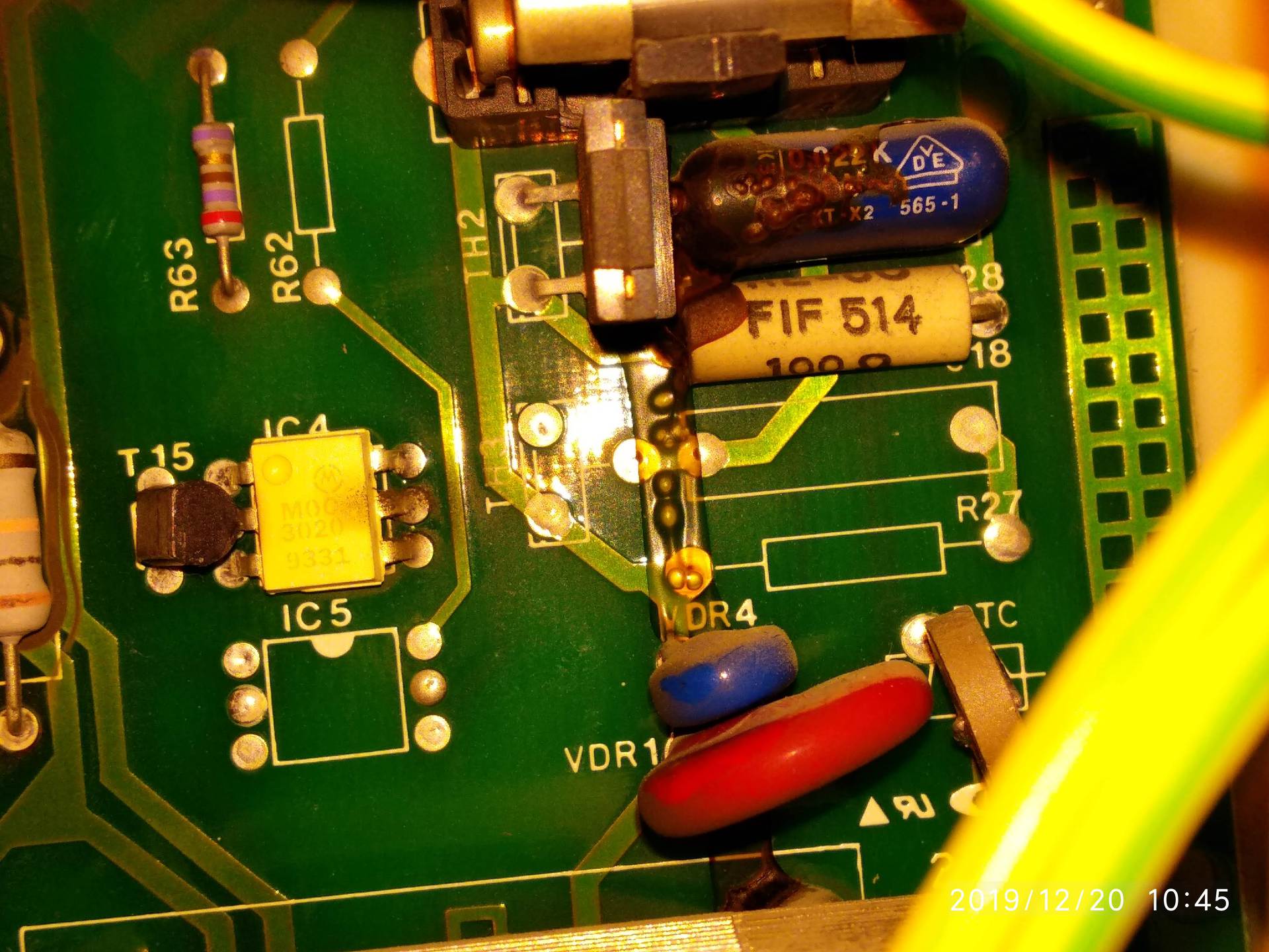 - Van egy csúnya folt/olvadás az áramkörön, a lenti fotókon látszik. Sajnos nem tudom, hogy mi lehet az, mert sem az eredeti (olasz..) bekötési rajzon, sem pedig a hasonló típus (ne 100) leírásban sincs róla semmi.