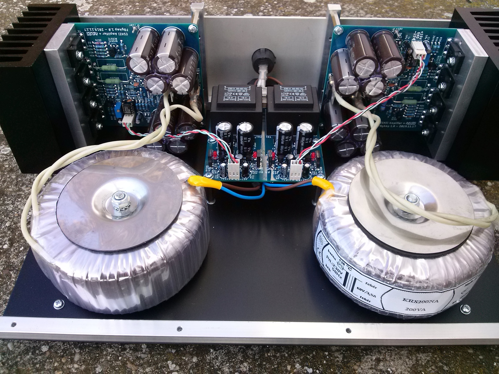 Tegnap délben megérkeztek a trafók. Beledobáltam őket, megmértem a két féltápfeszt, hogy szimmetrikusak-e és a nyugalmi áramokat. Járattam keveset a műhelydobozokkal, aztán jött a "hallgassuk meg gyorsan vajon hogy szól". Egy hete nem eszek, nem iszok, nem alszok, csak a percre várok, hogy végre megszólaljon ez az erősítő