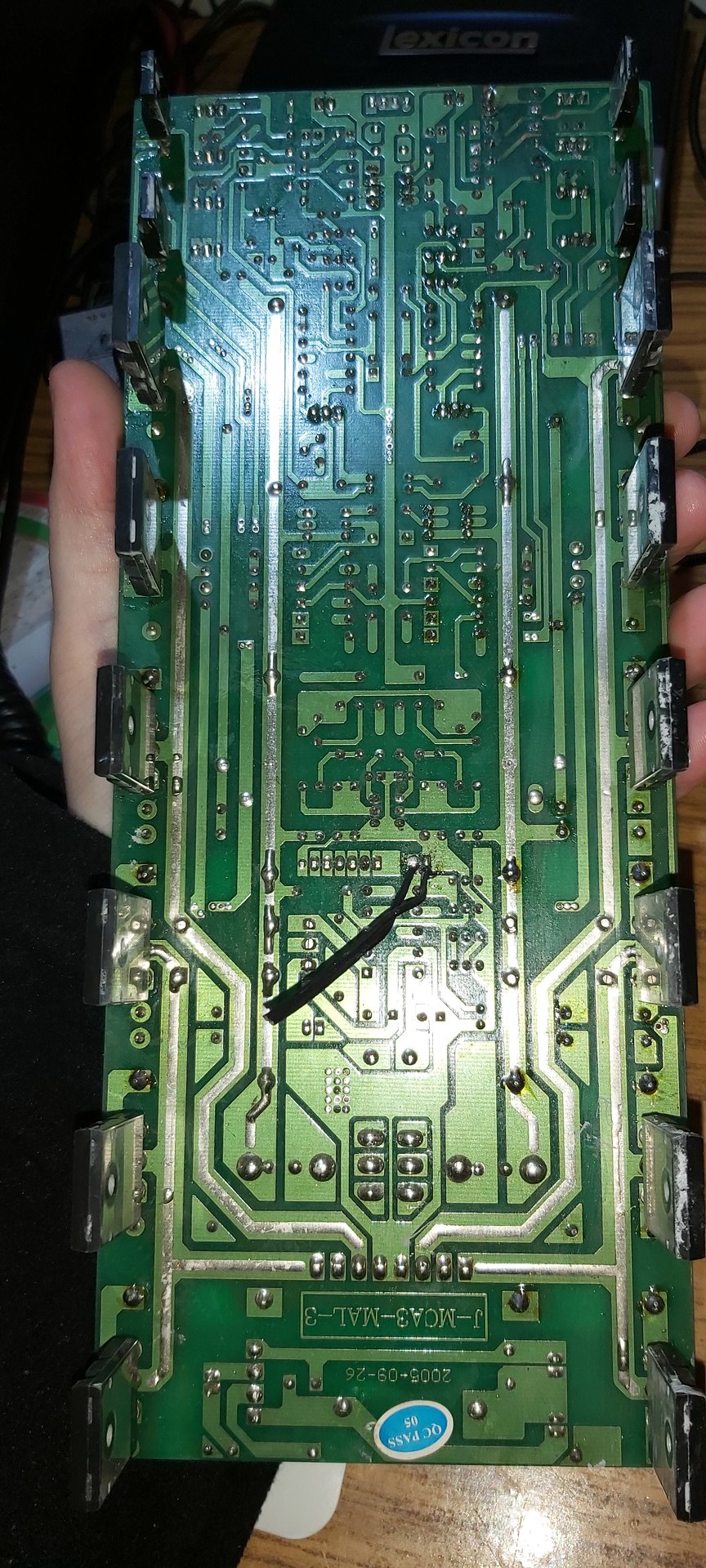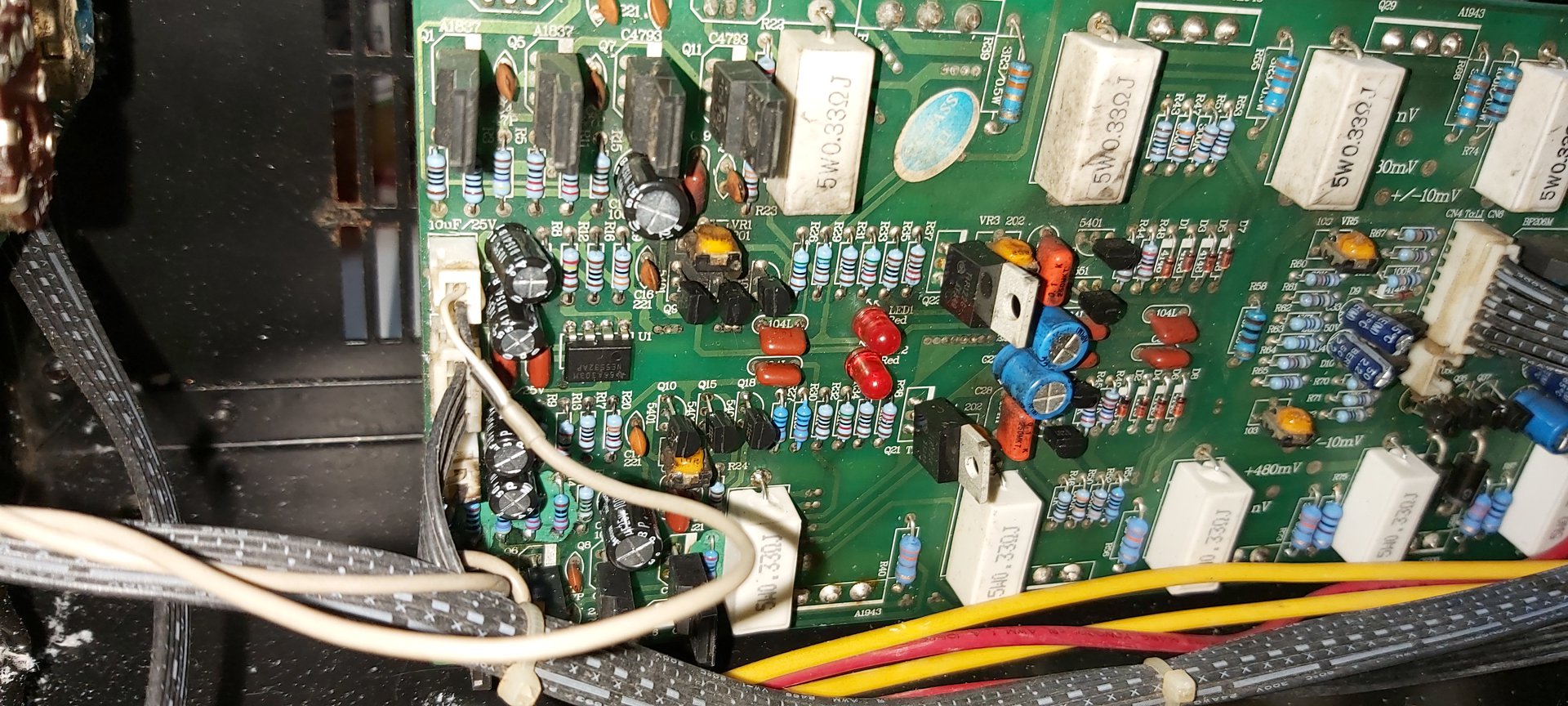 A szereó panel csatornánként ugyan annyi tranzisztort tartalmaz (a végtranzisztorokat leszámítva, csak a nem a hűtőre került néhány darab. Viszont ami baj, hogy a bias tranzisztorok nincsenek a hűtőn. Ott vannak csupaszon.