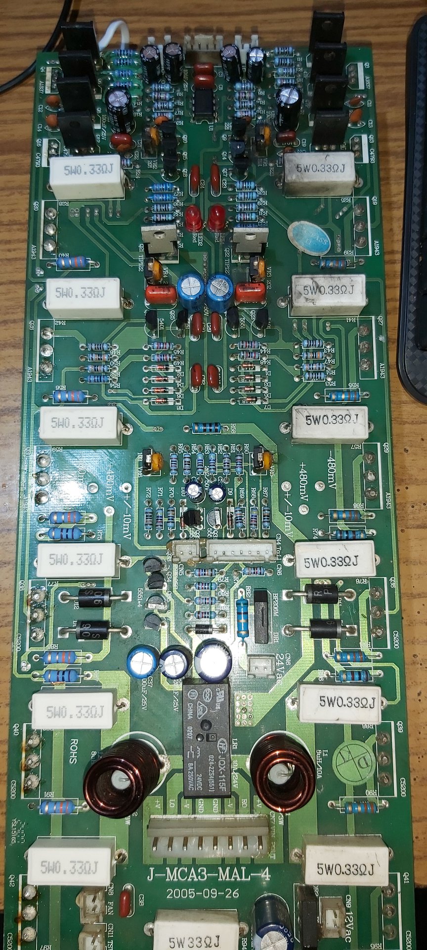 Semmi esetre sem jó a 480mV. Ott a kapcsolástechnika miatt az nem a 0,33 Ohmokat jelenti. Az már másfél Amper lenne tranzisztoronként. A lényegi részeket lerajzolom neked, de most csak egy papírlapon van skiccelve. Ezt meg épp eszű ember nem tudja követni. A szub rész megvan már, a sztereó panelt még nem néztem át.