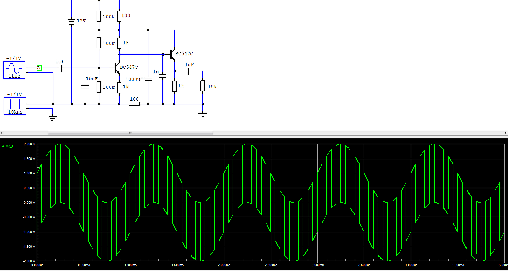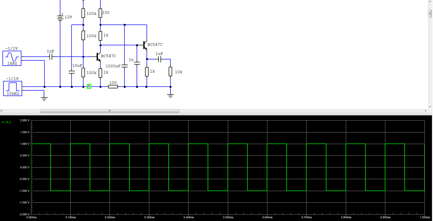 Itt van minden. Figyeld meg, hogy egy voltos hangfrekis jelet egy voltos négyszöggel zavarjuk. A kimeneten meg szinte semmi sem marad.
