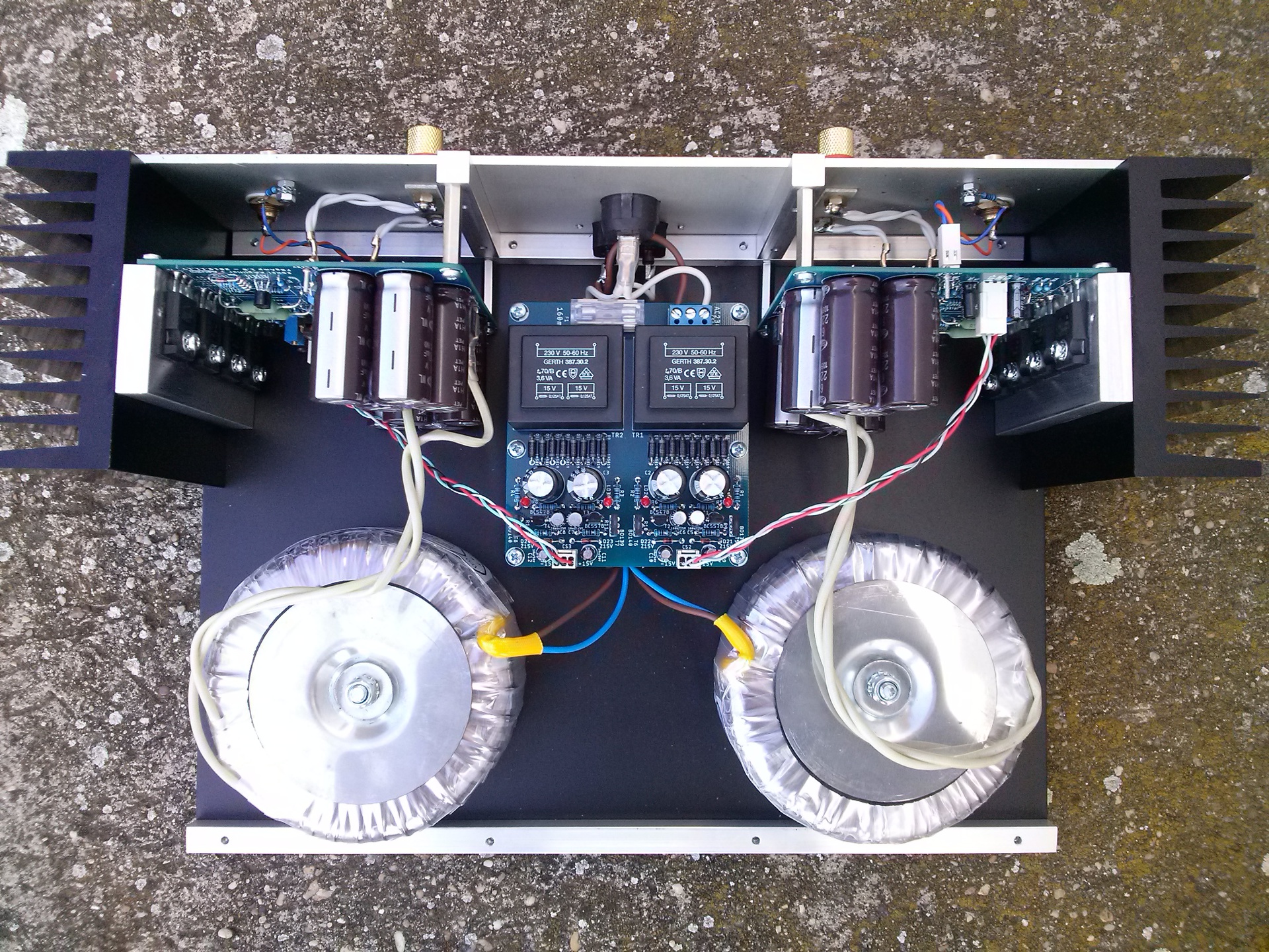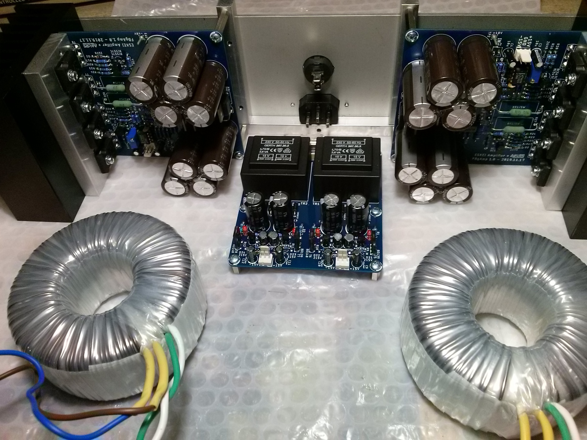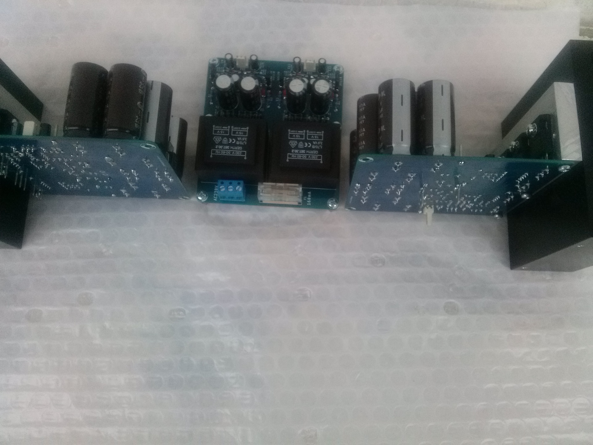 Tegnap délben megérkeztek a trafók. Beledobáltam őket, megmértem a két féltápfeszt, hogy szimmetrikusak-e és a nyugalmi áramokat. Járattam keveset a műhelydobozokkal, aztán jött a "hallgassuk meg gyorsan vajon hogy szól". Egy hete nem eszek, nem iszok, nem alszok, csak a percre várok, hogy végre megszólaljon ez az erősítő