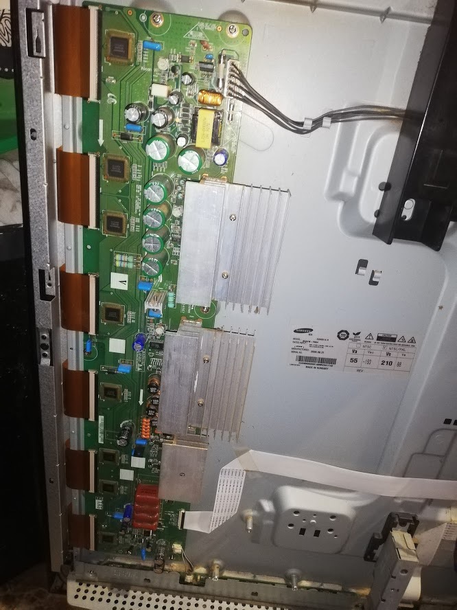 Adott egy Samsung PS50B430 plazma TV. Tegnap reggel, mikor kapcsoltam volna be, egy éles csattanás után ugyan elindult, de kép nélkül. Azóta csak hang van. A TV (előről nézve) jobb oldalánál egy villanást láttam, az Y panel alsó része körül volt látható. Az Y panel típusa: LJ41-05905A Találtam egy ilyen típusút egy TV Bontóban 10 ezer forintért. Viszont a fura az, hogy a panelen sehol egy égésnyom nem látható. Csatolok pár képet a panelről. A hiba: Bekapcsol a TV, pár másodpercig az Y panel tetején a kis trafó cincog, majd abbahagyja (gondolom a táp elveszi tőle a feszt, mert hibát észlel). Kép egy pillanatra sincs, tök sötét a képernyő. Szerintetek megéri vennem bele egy Y panelt? (már megrendeltem, de ki még nem fizettem, mondtam az eladónak, hogy gondolkodok pár napot) Csatoltam a képeket a panelről. Mit kéne keresnem? Mi az, ami elcsattanhat rajta?