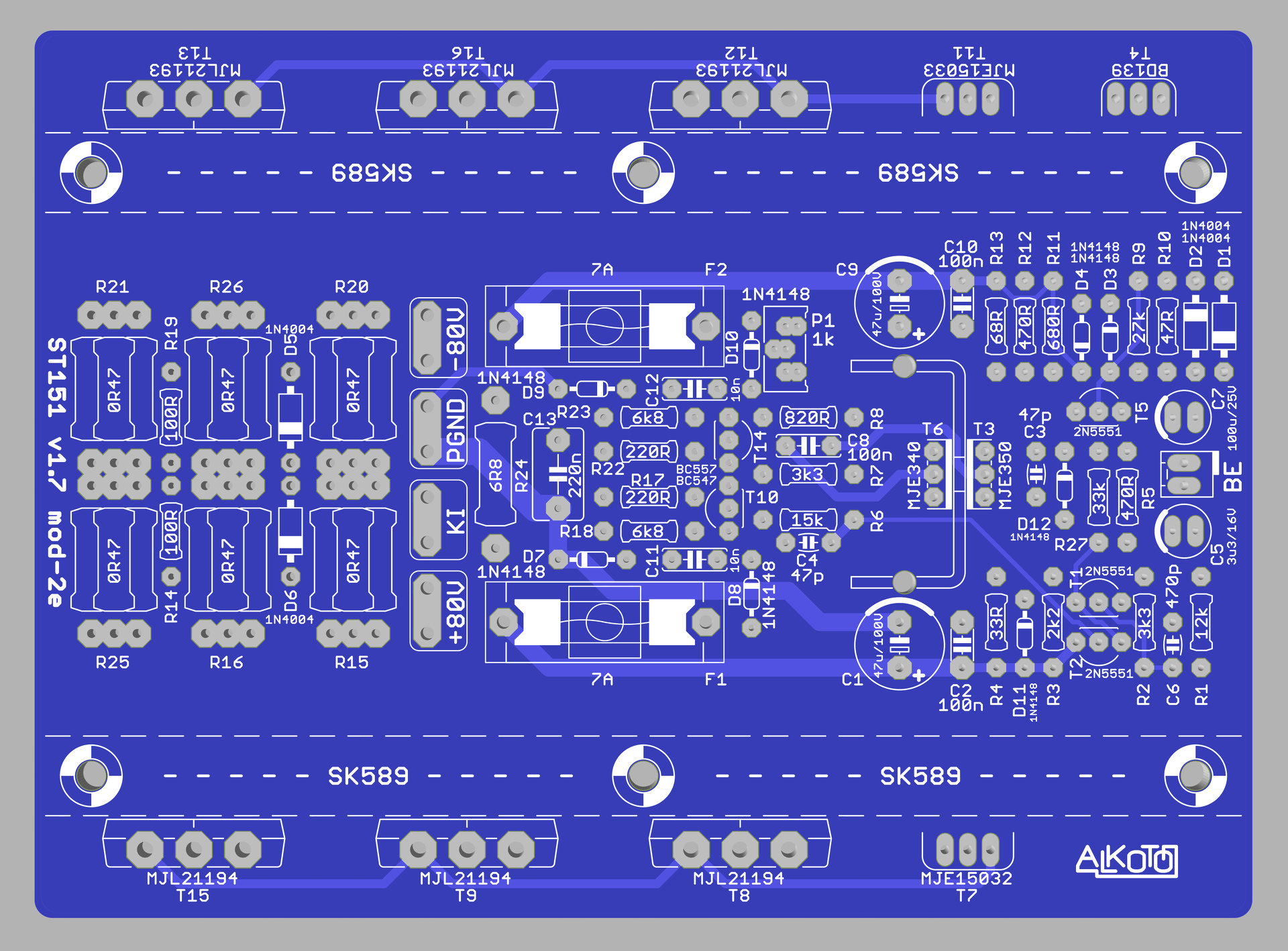 De ettől jobbnak érzem a normál furatot, két oldalon PAD-el, és abba beforrasztani a tranzisztort. Ha esetleg szervizelni kell, akkor ahhoz jó eséllyel mindenképpen meg kell bontani az erősítőt, akkor pedig már megoldható a félvezető cseréje.