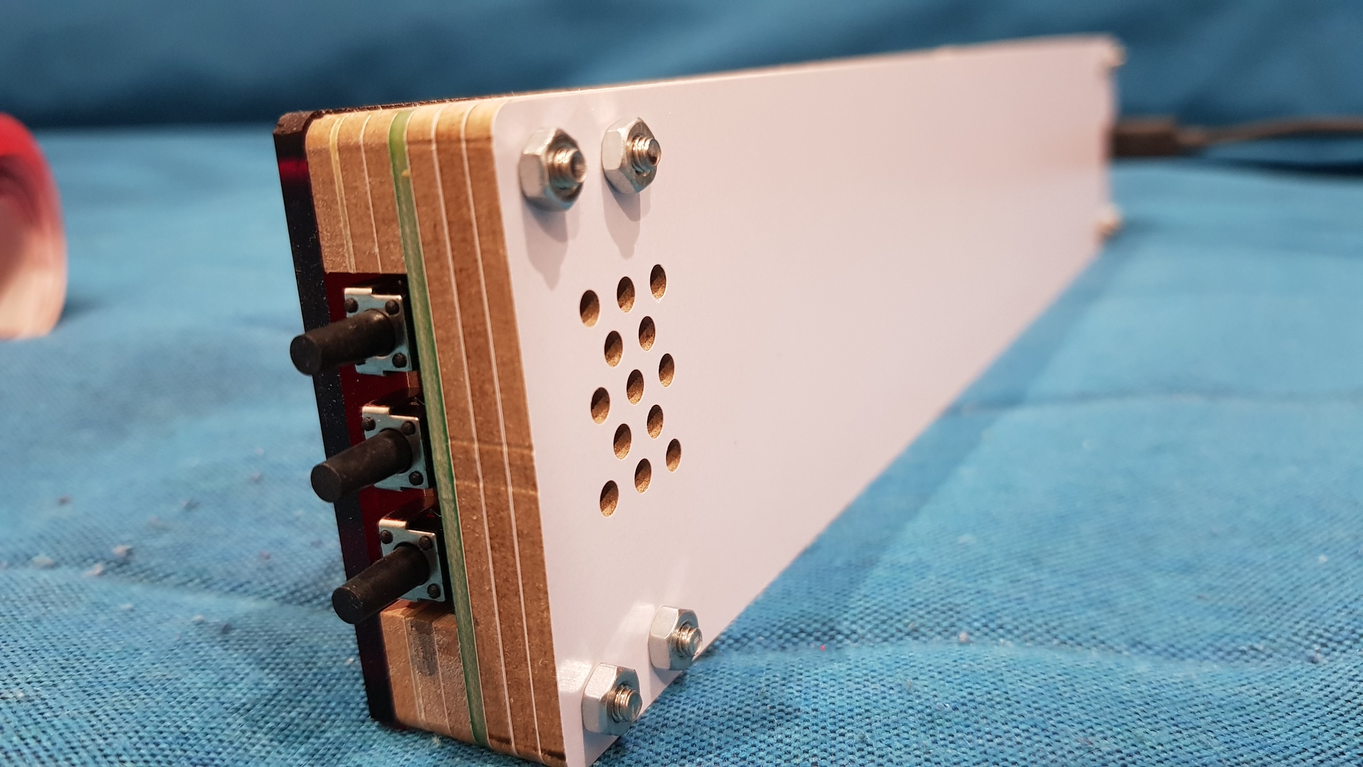 Sokat nem tudok kísérletezni ilyennel, egyszerűen nem lehet kapni fekete üvegszálas lapot, nagyon meg kell gondolnom, mikor mennyit vágok össze. Tudom, eBay és társai, de onnan egy hónap alatt sem ér ide, sokat sem lehet egyszerre rendelni az értékhatár miatt. Túl vastag sem lehet az előlap (két réteg), nagyon mélyre kerülne a kijelző.