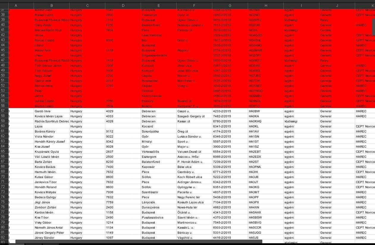 Táblázatkezelőbe betöltve minden adatra lehet keresni. Pirossal úgy látom azokat jelölik, akiknek a két hónap múlva a hónap végén lejár az adóengedélyük. Lilával (magenta) pedig azokat, akiknek a következő hónap végén, vagy ma jár le.