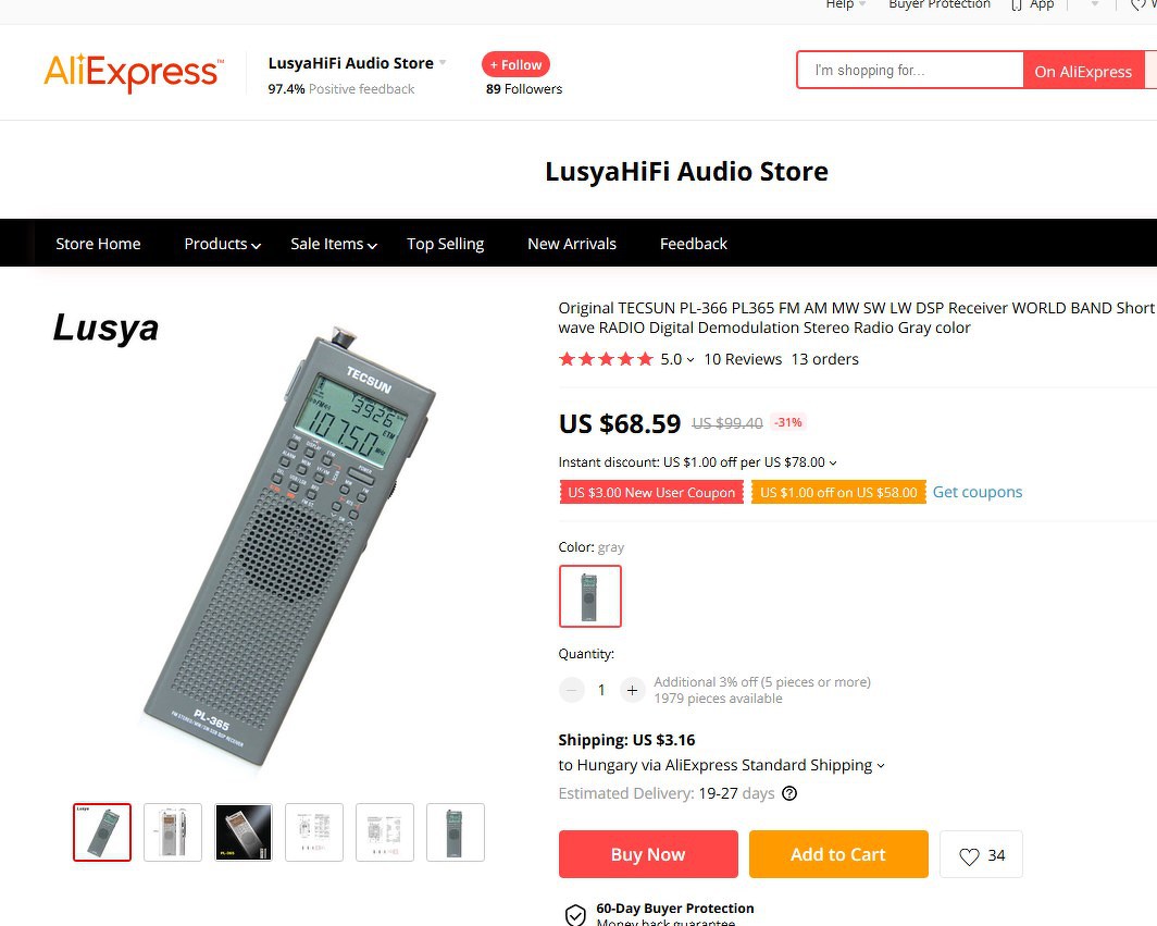Ráadásul nem is CB, hanem 0,15-30 MHz vevő SSB-vel +FM műsorszóró állomások vételi elehetőségével. Azt próbáltam érzékeltetni, hogy ebben az árban csak egy "másik ligába tartozó" rádiót lehet venni.