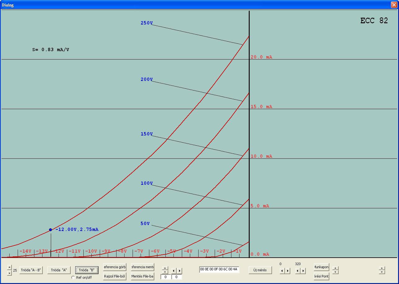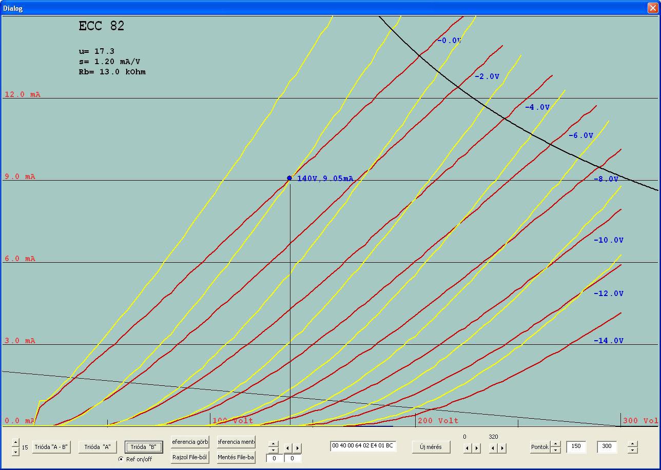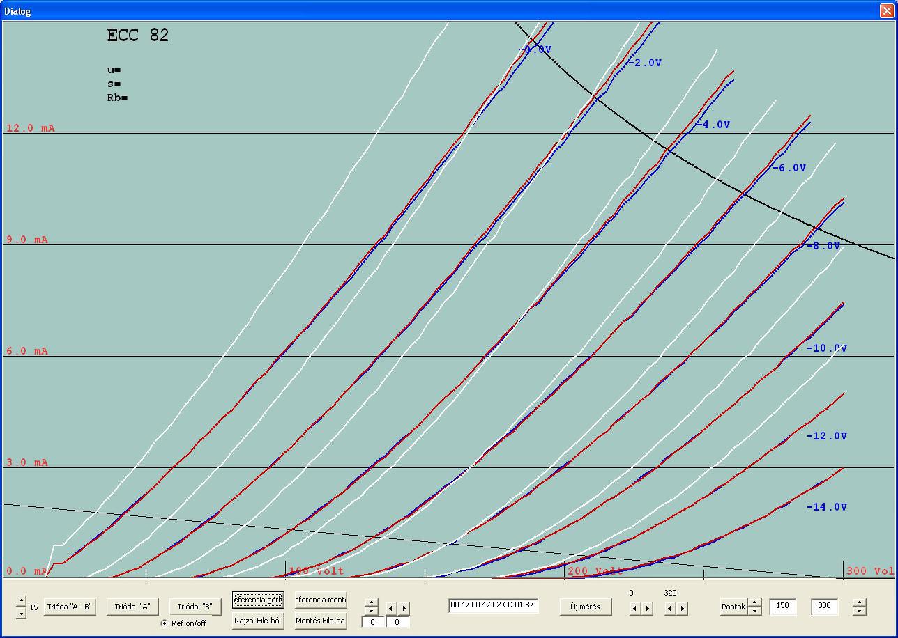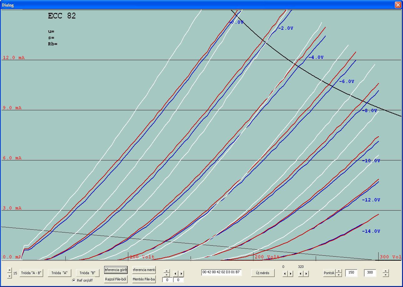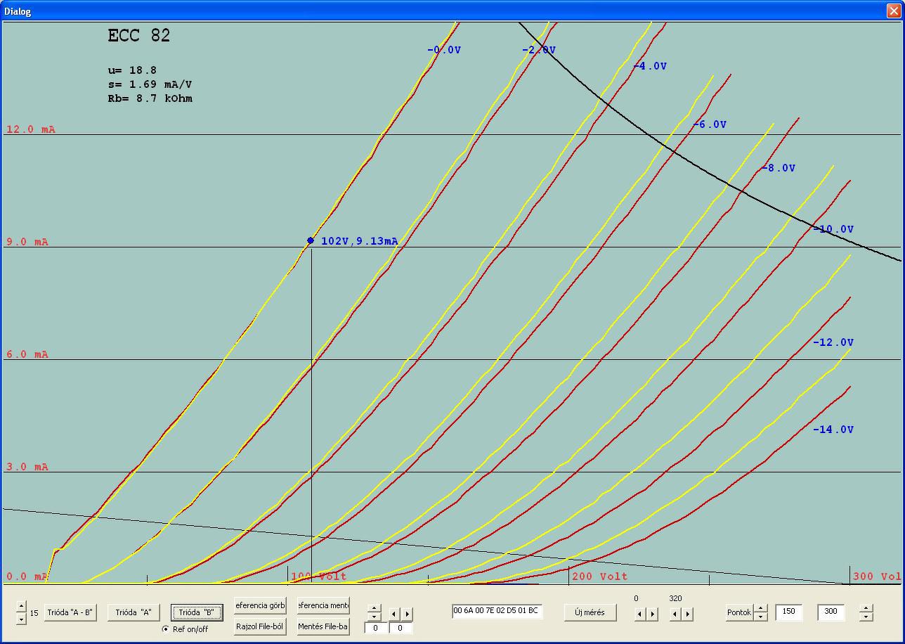 Viszont végig gondoltam hogyan is lehetne megcsinálni és azt látom, hogy egy cső %-os állapotát az Ug/Ia karakterisztika értékéből adják meg. pl.: ECC83 1,2mA-,250V-,-2.0V vagy 0,5mA, 100V, -1.0V vagy ECC82 10,5mA-,250V-,-8.5V vagy 11,8mA, 100V, -0.0V typical characteristics címen. Mivel ezekből a görbékből a gyártó csövenként mindössze általában 4-5 görbét ad meg, ezeknek az adatoknak a bevitele már nem egy nagy feladat. A statisztikai módszert végül is elvetném, mert egy referenciagörbének az eredeti/gyári értékeket kell tartalmaznia.