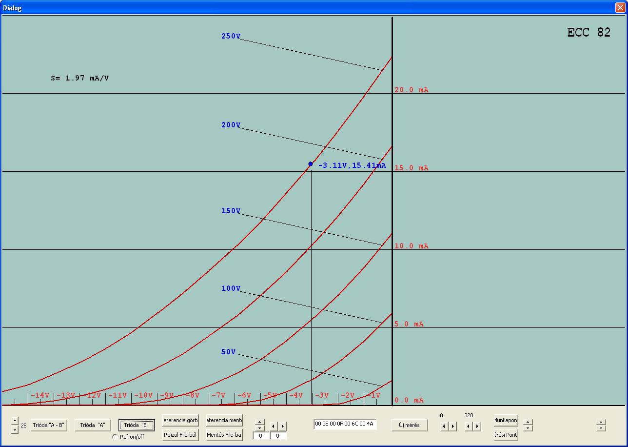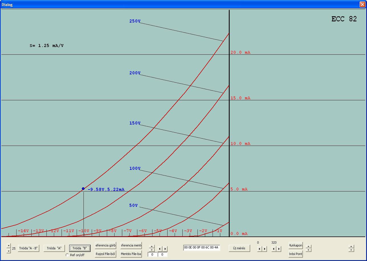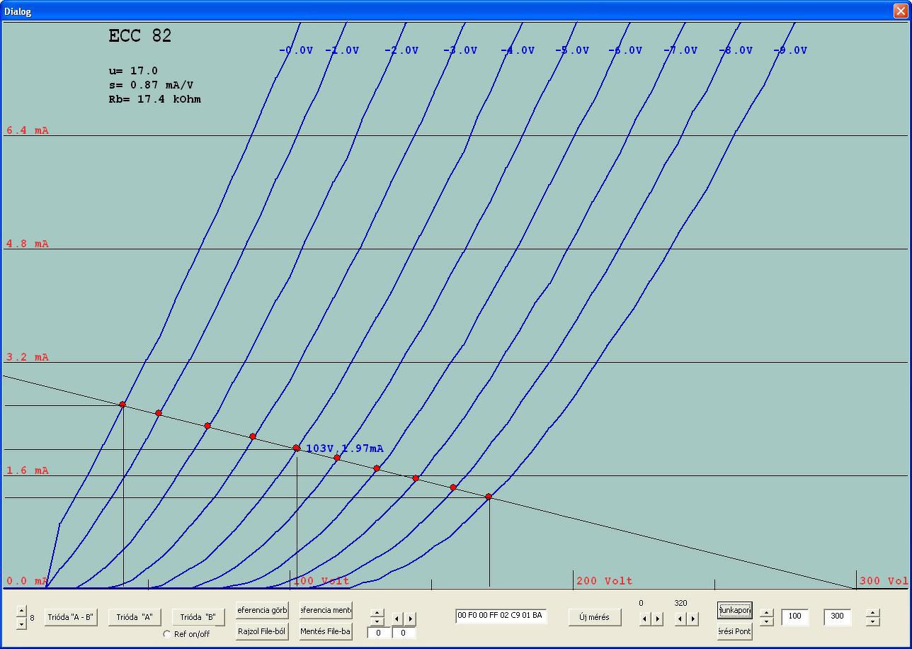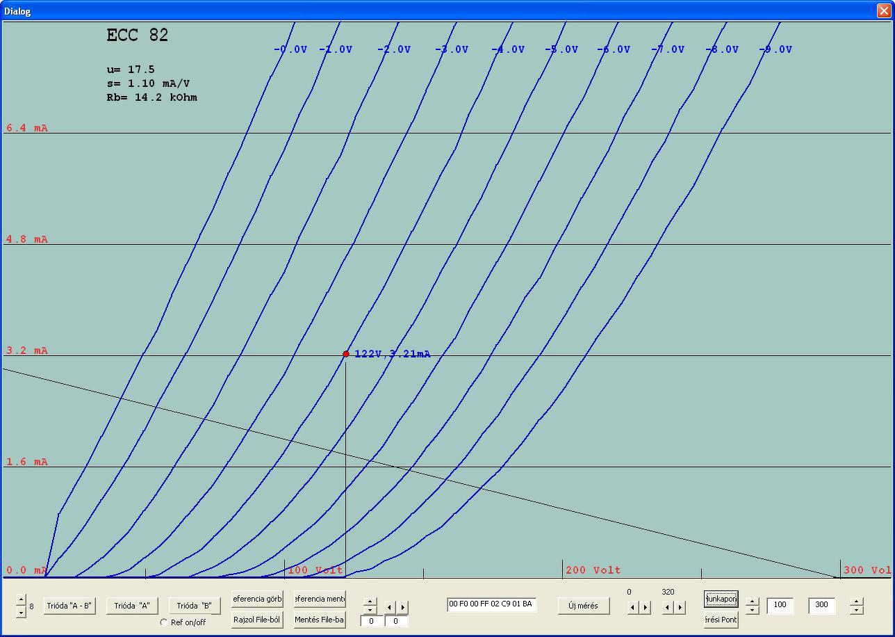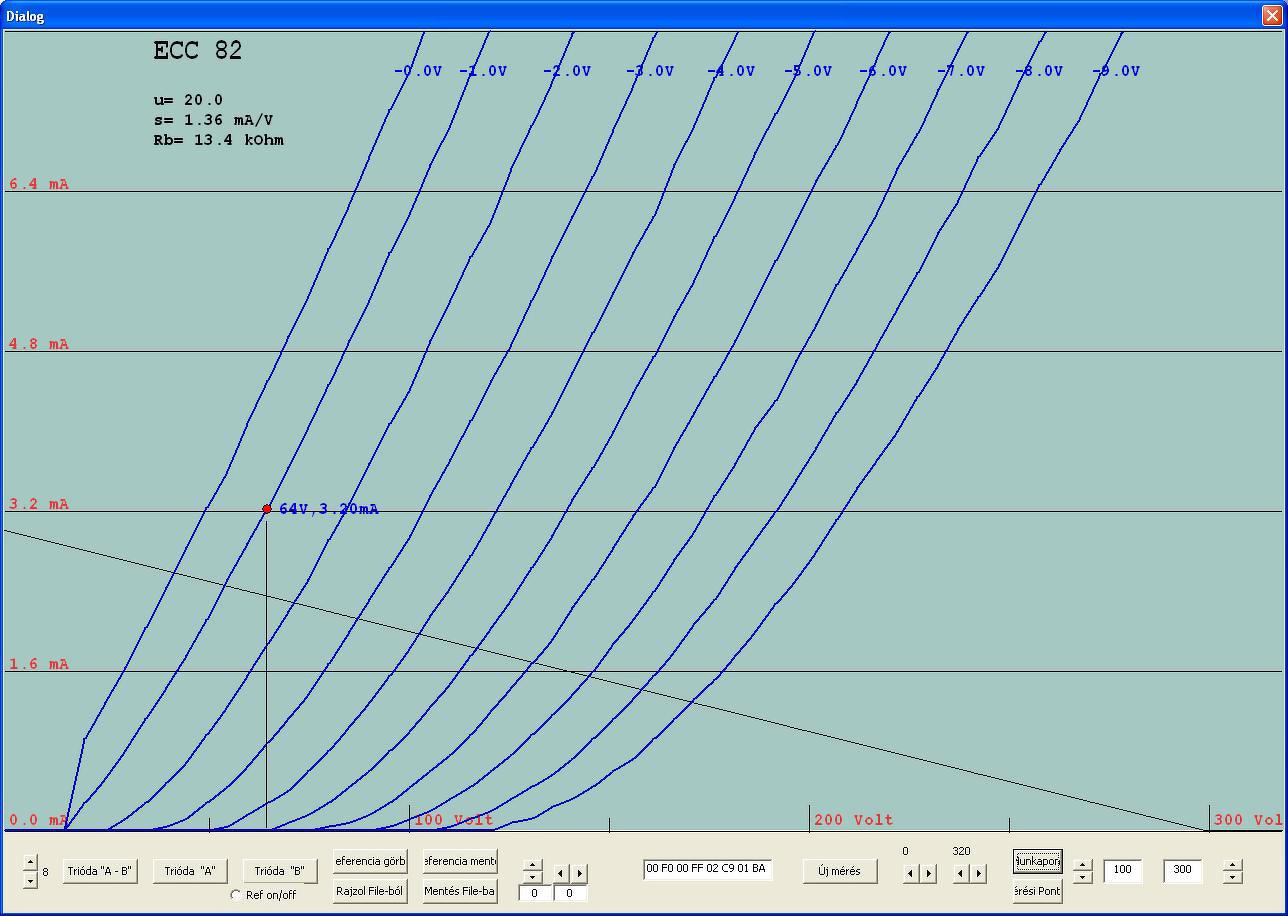 Viszont végig gondoltam hogyan is lehetne megcsinálni és azt látom, hogy egy cső %-os állapotát az Ug/Ia karakterisztika értékéből adják meg. pl.: ECC83 1,2mA-,250V-,-2.0V vagy 0,5mA, 100V, -1.0V vagy ECC82 10,5mA-,250V-,-8.5V vagy 11,8mA, 100V, -0.0V typical characteristics címen. Mivel ezekből a görbékből a gyártó csövenként mindössze általában 4-5 görbét ad meg, ezeknek az adatoknak a bevitele már nem egy nagy feladat. A statisztikai módszert végül is elvetném, mert egy referenciagörbének az eredeti/gyári értékeket kell tartalmaznia.