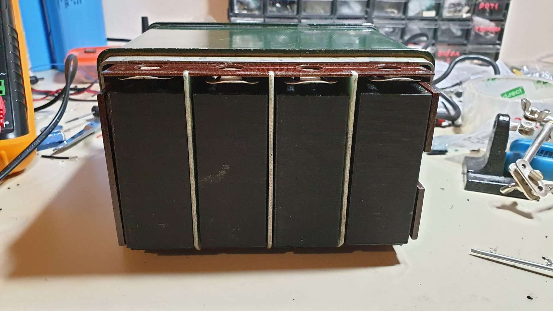 Ma készen lettem ennek a házilag épített erősítő monstrumnak a fel újításával (egy öreg bácsi csinálta még a 80-90-es években). Az erősítőt újra kellet kábelezni, új kondenzátorokat kapott mind a két erősítő panel, és egy stabilizátor egységet a VU méternek kellet fabrikáljak, valamint a doboz is festésre szorult, és nem utolsó sorban be kellet állítani a kimeneti DC szintet, akkor az üres járatot, és a limiter részt is. Amit az erősítőről tudni kell az az hogy a finál tranzisztorok SDT9202S 4darab/oldal (2N3055) típusúak, a meghajtás BD237 BD238, és az alimentálás pedig +-45V. Az erősítő maximális teljesítménye 130W/4ohm, oszcilloszkóppal be mérve.