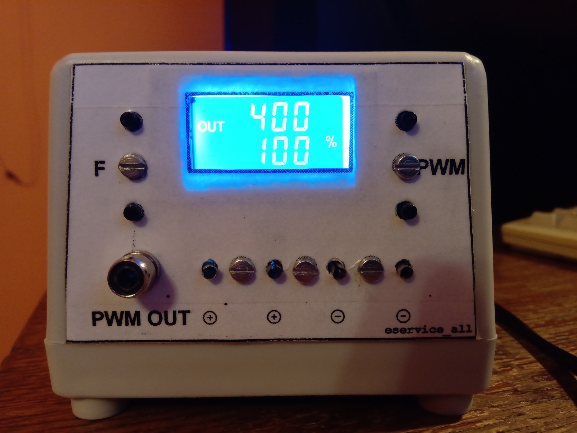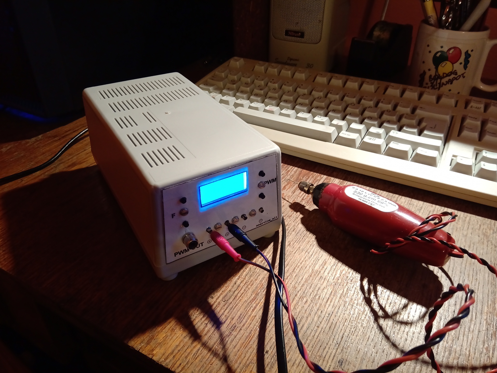Nos akkor bemutatnám én is a nyákfúróimhoz tervezett PWM motorfordulatszám szabályzót. Frekvencia tartománya 0-150kHz tartománybann folyamatosan nyomógombokkal változtatható, a kitöltési tényező 0-100% és ezzel együtt a motor fordulata gyakorlatila 0-15 V között van. A terhelhetősége kb. 2A lehet ami elegendő egy kis nyákfúró meghajtásához. A jelet egy kinai PWM modul szolgáltatja. A darlingtonos végfokot sajátmagam készítettem. A fetes és egyébb hidas megoldásokkak sokat küzködtem egy sem vált be igazán.Az előlapra kivezettem a PWM jelet,így majd külső alkalmazásokhoz is felhasználható.