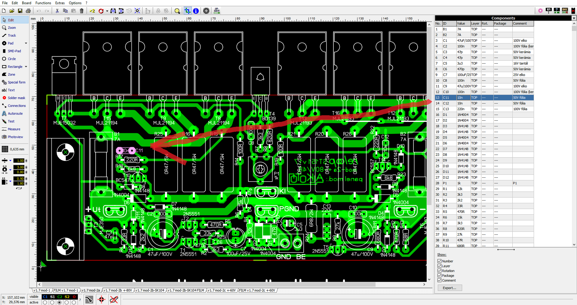 Vagy a képet kellene forditani, vagy elhagyni az alkatrészek körvonalát. Ha nem forditod a képet akkor nyomtatáskor tükrözni kell. Jelenleg a c2 -s2 kombó kellene, de le tudod ellenörizni a ? - jel re kattintva A hozzászólás módosítva: Jan 9, 2020