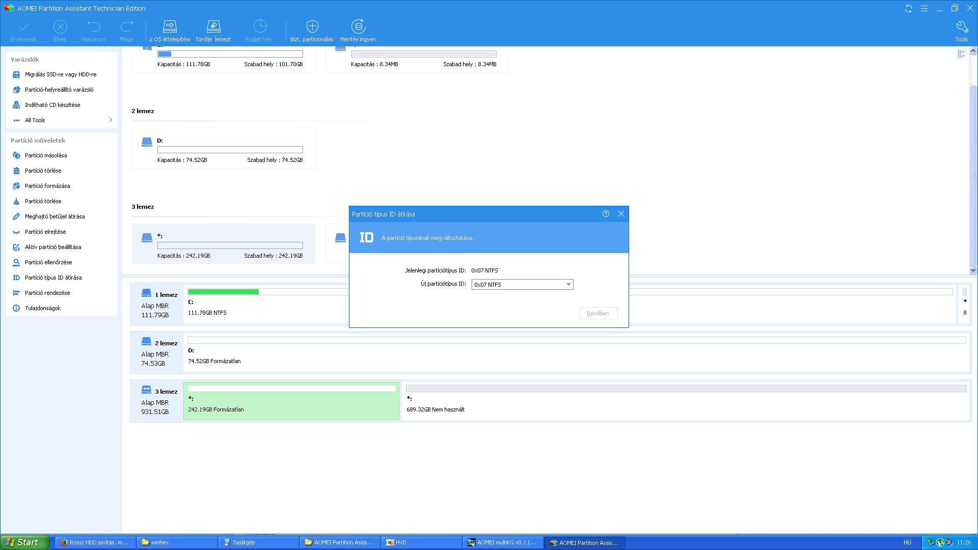 Partícionáltam és leformáztam XP telepítővel, a régi 30Gb és 916GB helyett a teljes kapacitást partícionáltam és formáztam le.