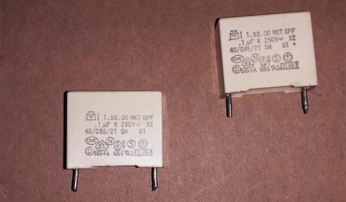 Természetesen lehet az oka. Igen, 100 nF 400 V X2 kondenzátor kell a helyére. A 100 µF jó, mehet vissza a helyére.