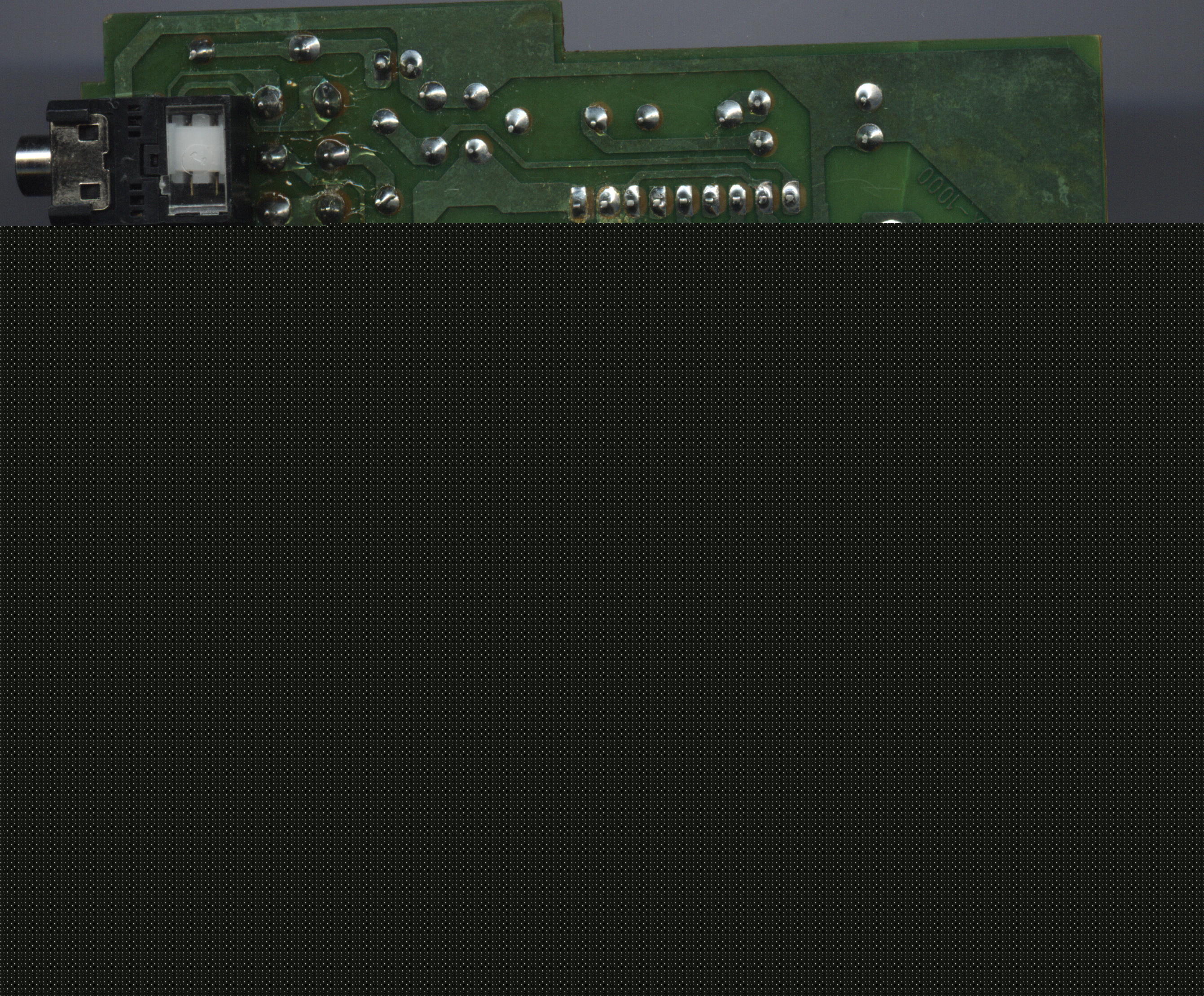 Ja igen, a képen nem látszik ugyan, de a csatlakozó felöl, van egy pár jumper tüske. Egészen ponosan 3 pár, amire házilag volt ráforrasztva egy-egy darab led. Valamint szintén ezen az oldalon előlap is volt rajta valaha. Nem én vettem le. De tényleg.