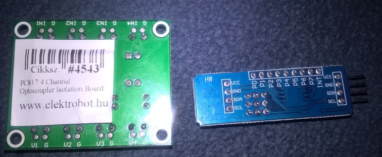 A másodikon (drágább változat) már vannak optocsatolók és egy PCF8574-es IC is. Utóbbi kb. 500 - 600 Ft, egy egyszerű optocsatoló megvan vagy 100 - 150 Ft.