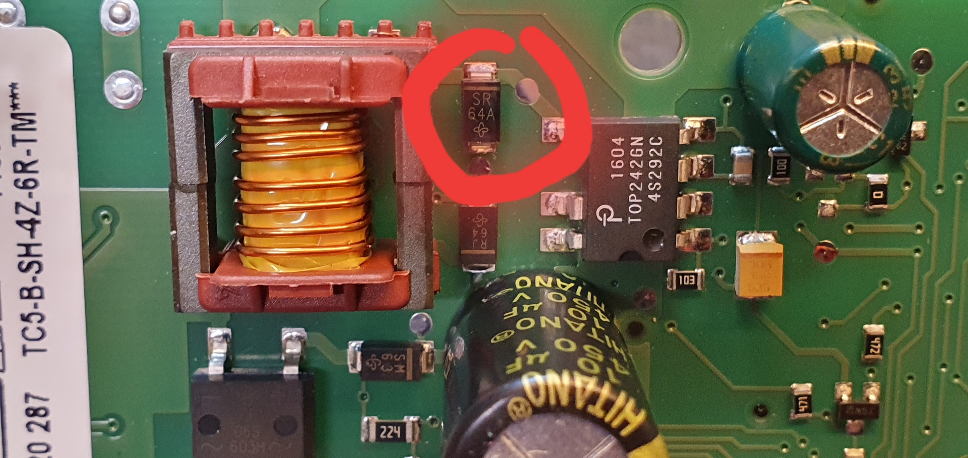Az alábbi képen bekarikázott smd diodat (SR64A)kellene cserélnem. Sajnos nem tudom mit tegyek oda.